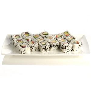 Mix di 18 rotolini con riso esterno di alga, avocado, gambero cotto, tonno e salmone